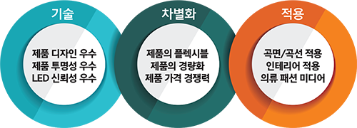 | 원천기술개발사업 | 플렉시블 필름을 이용한 광원 피치 6mm 이하의 디지털 사이니지용 투명디스플레이 개발 | 2020.05.01 ~ 2021.12.31/td> |