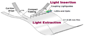 - 전류가 흐를 수 있도록 투명 필름 위에 미세회로 패턴을 형성하고 그 위에 LED 및 전자소자를 실장